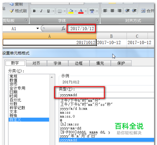 但上面的公式有一个短板,就是引用的数据必须是日期格式,如yyyy/mm/dd,如果单纯是一串文本数字,如20171212这样的,这个公式就不起作用了,当然,你使用自定义数字格式也是不能生效的。那怎么办呢?不用担心,我还有一个办法,是巧妙利用 mid公式加上 连接符号&完成这个工作。