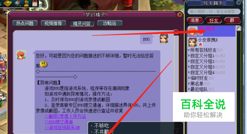 点击最上面的梦幻精灵,在聊天内容处输入 BUG