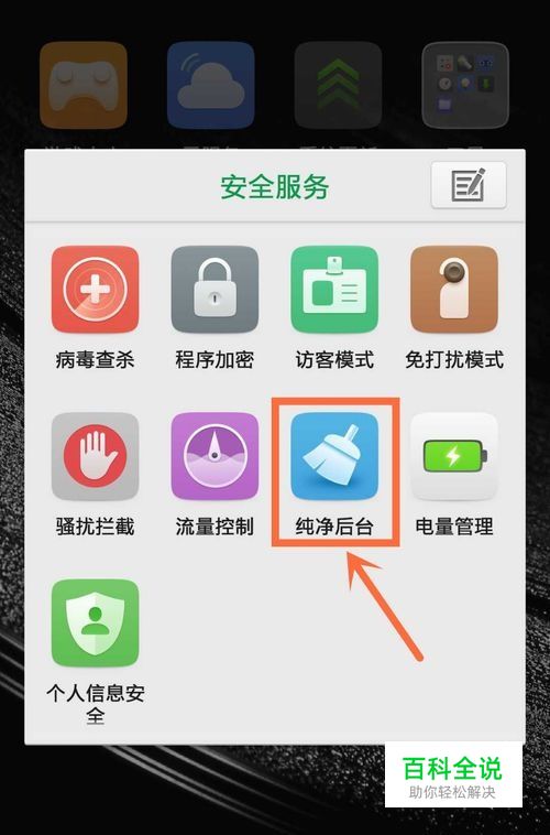 1.在桌面上打开安全服务里面的纯净后台