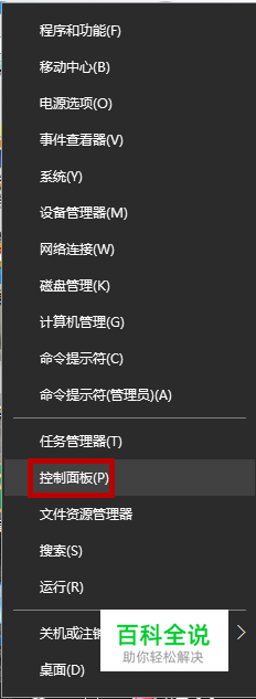 鼠标右键点击开始按钮,然后点击“控制面板”。