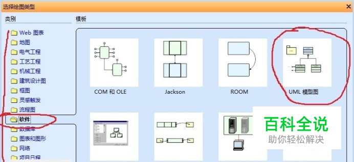 选择UML下面的,图形类型,活动,协作等等,visio图形