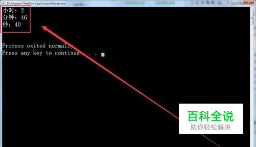 测试程序,在输出窗口中,输出给定秒数的小时、分钟和秒的值。