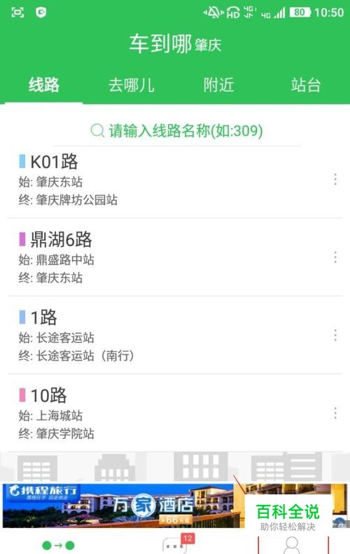 输入“10”,就会显示出与10有关的线路名称,根据线路的开往方向,选择想查询的线路。