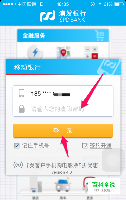 在银行柜台开通手机银行之后,在手机上面登录自己的手机银行。