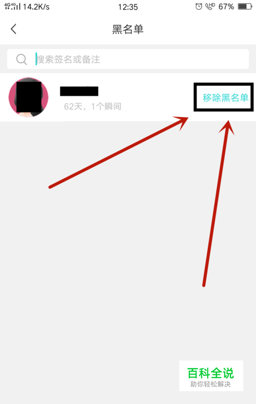 在黑名单设置中,在黑名单列表中,点击右侧移除黑名单即可,如图所示