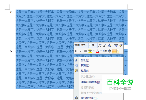 选中目标文字以后点击右键,在弹出的菜单中选择段落选项。