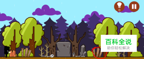 在第二场景的第三棵树拿到红色果实。 在第三棵树底下草丛找到钩子。