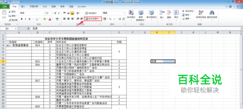 在对齐方式区中点击【合并后居中】