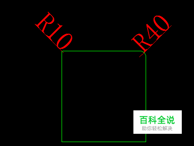 调用圆角命令对矩形进行圆角,左上角半径为10,右上角半径为40.