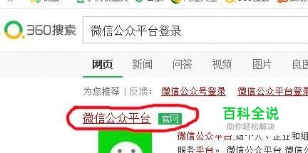 打开浏览器,输入“微信公众平台登录”,出现如下界面,选择“微信平台官网”,进入微信公众平台登陆界面;
