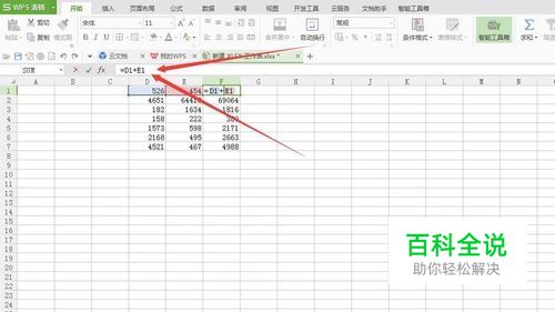 我举个简单的例子来实验一下。 我想要得出两个数字的和,那么首先应该将数字打出来排列好。比如我在D这一列输入一列数字。 然后在E这一列同样输入一列数字,想要得出D+E的和