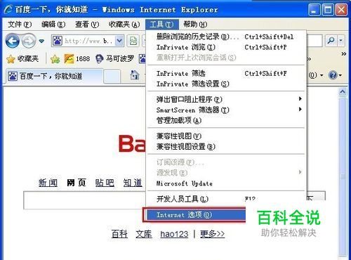 打开浏览器,选择菜单栏上的“工具”》“Internet选项”