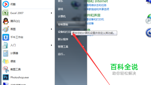 要设置这个功能菜单需要我们先进入到控制面板,点击 开始----控制面板进入。
