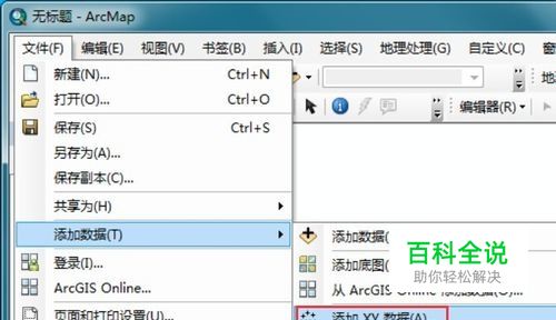 在Arcgis10菜单栏中,点击“文件”--“添加数据”--“添加XY数据...”