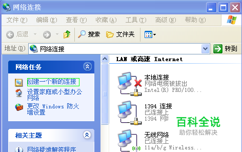 在桌面上鼠标右击网上邻居,选择属性,然后会弹出网络连接的窗口,点击网络任务里面的创建一个新的连接