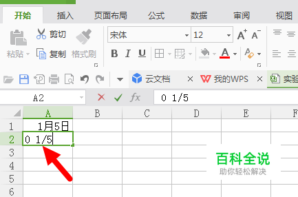 如果在表格中直接输入1/5,可能结果只会出现日期的形式,如图。我们先尝试第一种办法:在表格中输入0+空格+1/5,如图(+不用输)。