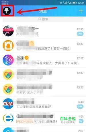 打开手机QQ,在QQ界面左上角,点击QQ头像图标。