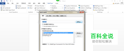 倒数第二行加载项,点击mathpage.wll,然后右边最下面的管理边上选择模板。点击转到。