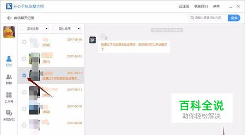 扫描完成后,我们即可预览到扫描出来的微信聊天记录。黄色的表示iPhone手机已经删除的微信聊天记录;黑色的表示iPhone手机中还存在的微信聊天记录。如果我们要恢复某些微信聊天记录,在左侧方框中勾选,然后点击【恢复到电脑】即可。