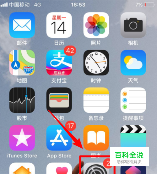解锁我们的苹果手机进入系统界面后,点击设置的图标进入。