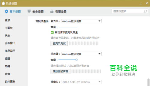 如果平时使用的是QQ进行的语音和视频的话,我们可以通过QQ进行声音的调节。点击QQ界面中打开系统设置,进入系统设置界面。点击音视频通话,进入声音控制界面。