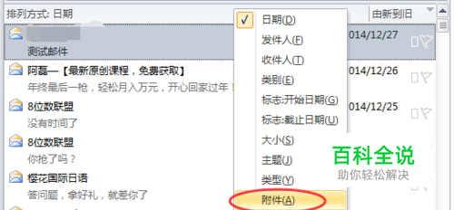 Outlook2010查看附件 Outlook怎么查看有附件的邮件,默认的情况是按照时间排序的