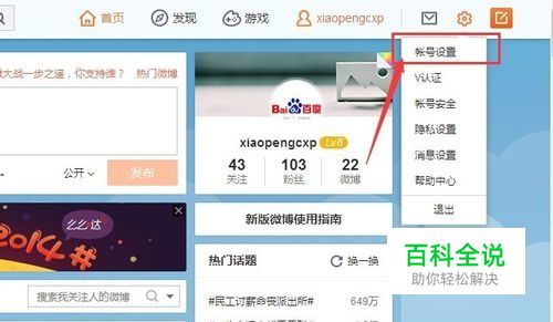 首先,请大家登录自己的新浪微博账号,然后点击设置按钮,进入“账号设置”。