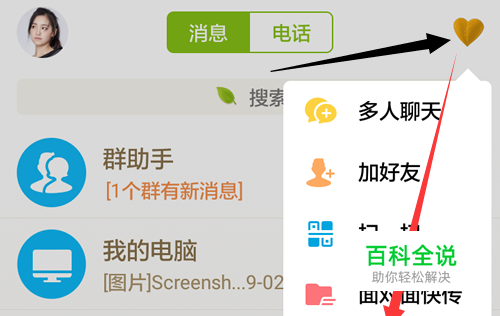 登录手机QQ后点击右上角的加号(我的主题显示为叶子,哈哈),弹出菜单选项后点击选择【付款】。