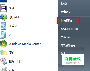 首先我们打开开始菜单,然后找到控制面板选项,如图: