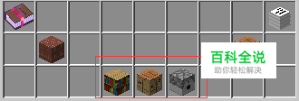 建造 使用一个书架、一个工作台、一个发射器在地上从左到右并排即可做成“魔法工作台”。