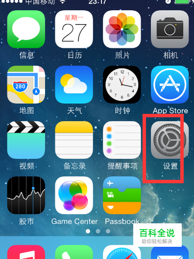 进入手机后,在桌面我们找到且打开“设置”。