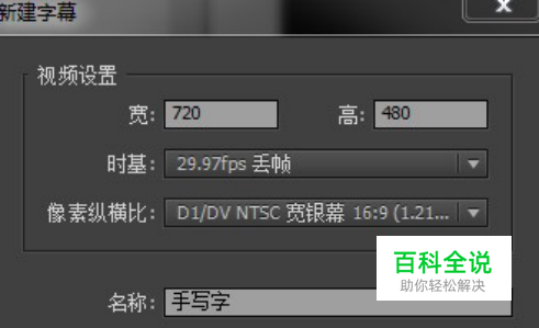 在菜单栏中单击字幕,选择新建字幕—默认静态字幕,然后将弹出的新建字幕对话框的参数设置为如图1所示。单击确定按钮。在弹出的对话框中输入“大”字,在右边的字幕属性中将其的字体设为“Adobe Arabic”,字体大小为250,单击关闭按钮,即可在项目面板中看到刚新建的“手写字”字幕了。