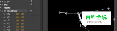 将时间标尺在00:00:00:00的位置。再给它添加4点无用信号遮罩(视频特效—键控—4点无用信号遮罩)视频特效,该视频特效的参数设置以及节目面板中的显示如图4所示。并上右和下右的关键帧帧。