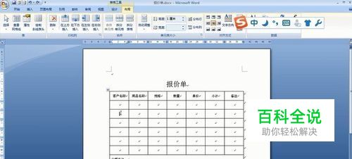 本教程介绍的是在word表格中插入行、列。以下表格为例,我们要在客户行下面加一空白行。