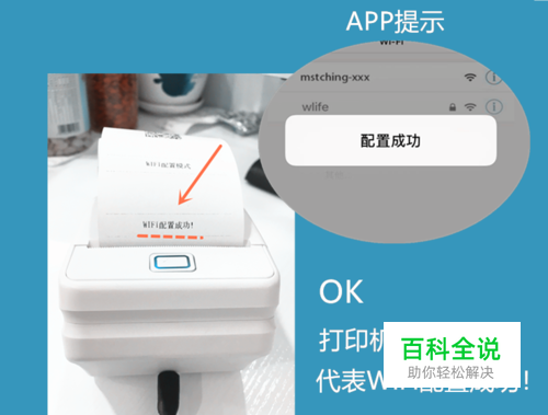 系统提示“配置成功”,与此同时,打印机也会打印出一行字,“wifi配置成功!”,打印完成配置,接下来就可以通过APP来遥控打印机进行打印了。