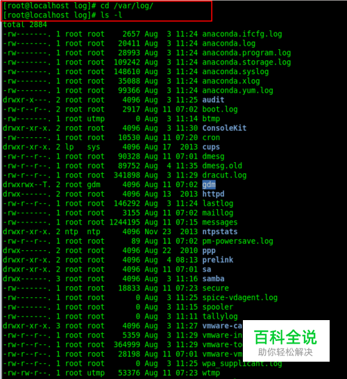 首先进入系统日志,所有服务的登录的文件或错误信息文件,都在/var/log/记录下来 cd /var/log/
