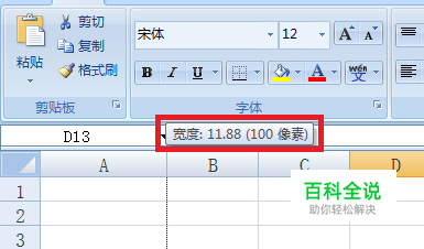 就以A1为例,首先设置列宽,选择A1和B1单元格中间的线,可以看到宽度和像素,记住这个像素;