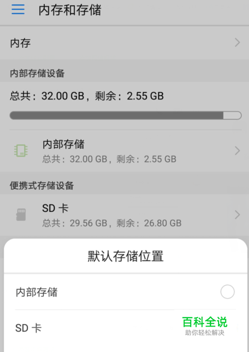 小编就为你介绍下由SD卡改到内部存储,当然了,由内部存储改到SD卡也是一样的操作,如图。