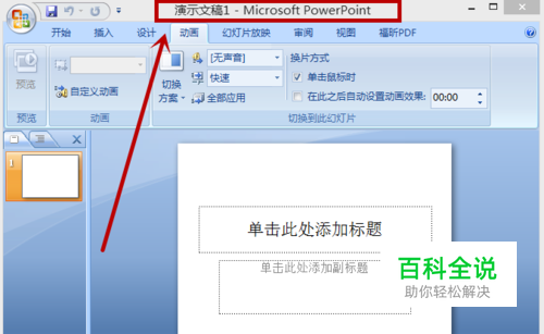 1、打开ppt。 点击并打开ppt,小编此处打开的是演示文稿1,如下图。