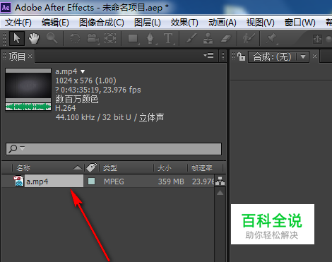 之后,AE上方的中间就会出现一个合成选项,我们双击合成里面的视频即可哟。