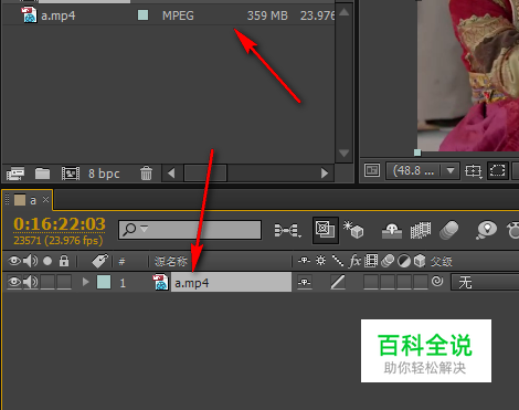 如图所示,双击视频之后,AE里面就会自动生成一个“图层”,在这里就可以剪切视频了。