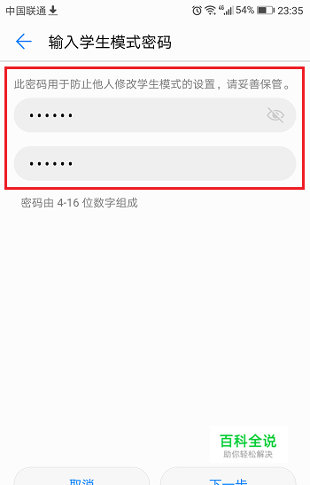第五步开启学生模式需要设置密码,防止孩子自己直接切换到正常模式,需要输入密码,才能进去学生模式设置界面,如下图所示: