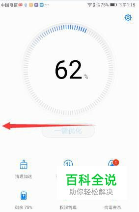 将“手机管家”界面的第一页,向左滑动屏幕,