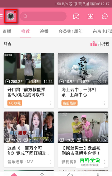 打开哔哩哔哩的主界面以后,点击左上角的个人头像图标。