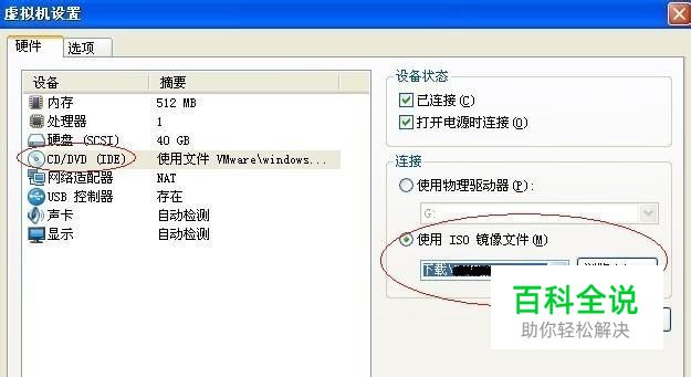 然后在弹开的窗口中点击CD/DVD选项,在右边窗口中查看《使用ISO镜像文件》列表中的.ISO文件是否是系统的ISO镜像