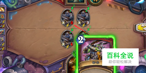 步骤五:再使用法术卡牌盾牌猛击攻击对方的左侧随从。