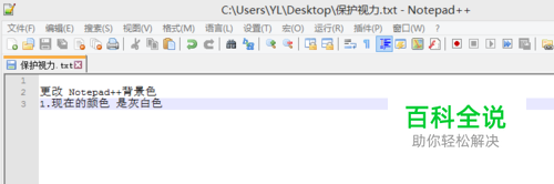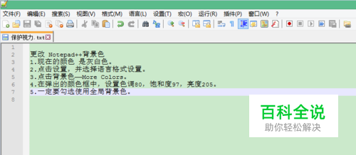 当今社会,人们对各类软件使用度越来越高,而人们的视力越来越低。慢慢的人们意识到这种情况,开始寻找解决之道。解决方法之一就是设置软件背景为保护视力的颜色。下面我们就来介绍一下如果更改Notepad++背景的方法。下图就是更改背景色后的样子。