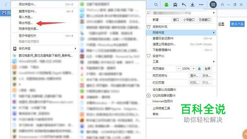 首先我们进入QQ浏览器,然后点击右方菜单键,再将鼠标置于网络书签之上