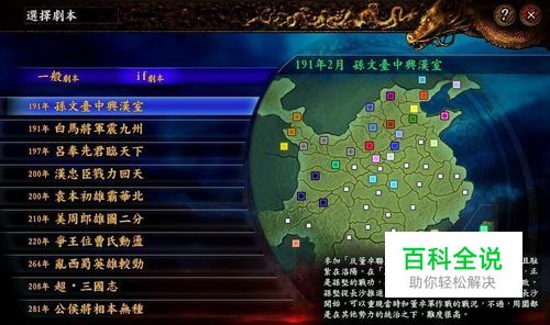 第一次玩游戏只能玩一般剧本,如果了解《三国演义》,可以选择一个相对简单的剧本,个人偏向于前期的群雄根据的剧本,因为敌对势力只有一两座城池。