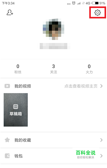 点击后会打开个人中心界面,在右上角找到并点击【设置】按钮。